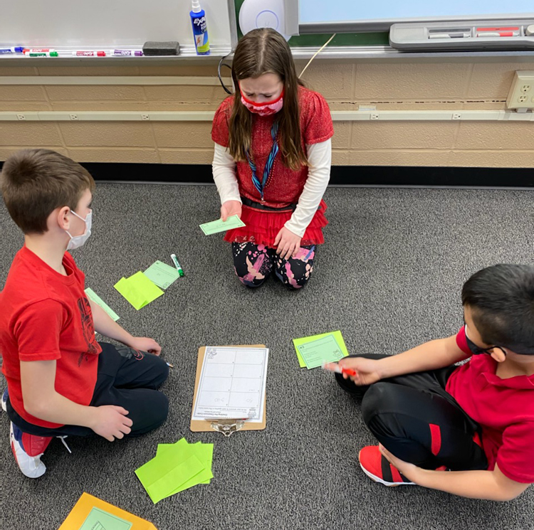 Fifth graders Wade Post, Reagan Van’t Hof, and Maddison Van’t Hul looking for the LCM or least common multiple.