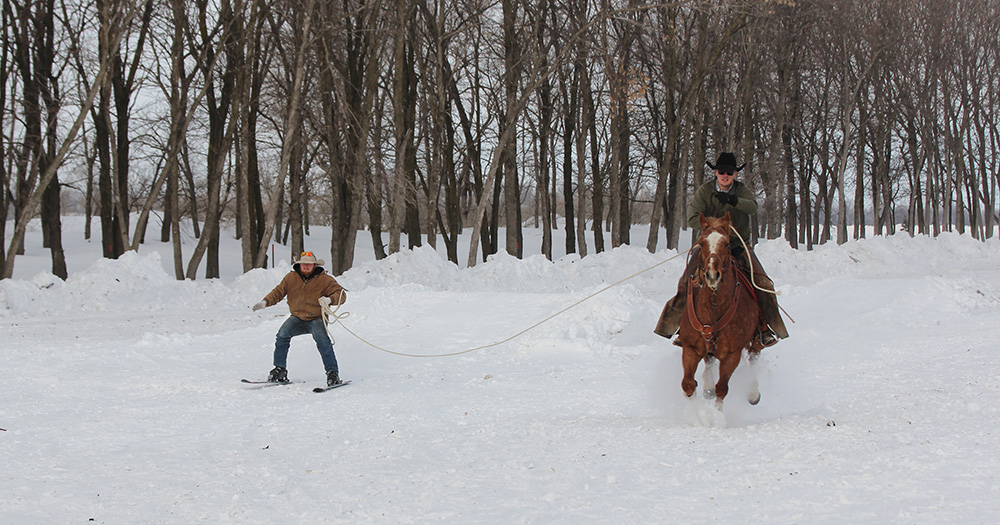 This past Saturday, Diamond H Acres hosted a fun winter activity never seen before around here. Skijoring is a winter sport where a person on skis is pulled by an animal such as a horse or dog. The event on