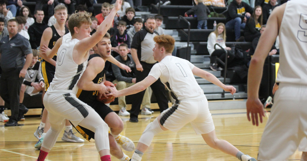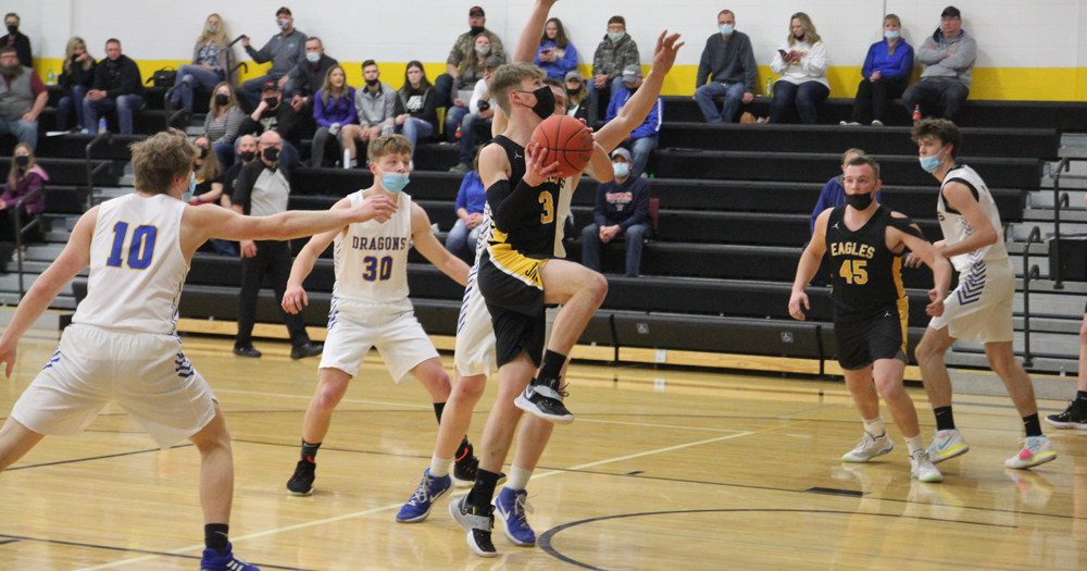 The Skip Hunter – The SWC boys’ basketball team welcomed the Heron Lake/Fulda Coyotes to Edgerton last Friday night for a Red Rock Conference match up. The Eagles, fresh off a win against Jackson County Central, were looking to keep